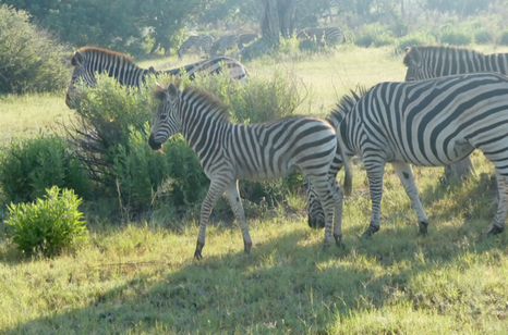We even had the extreme bit of good fortune to see a mother leopard with two cubs one evening. It was getting near to curfew time but Frank and Patricia, who had joined us that day and is another good tracker, noticed feline paw prints in the dusty road we were following. As we came around a curve, there they were several yards in front of us. The cubs ran off into the bush but the mama just laid down in the road right there in our path. Frank stopped and turned off the engine. We heard her quietly calling to her cubs and Frank thought she was actually teaching them that these safari vehicles are not a danger. Eventually, the cubs emerged and nuzzled with her before they all took off again.