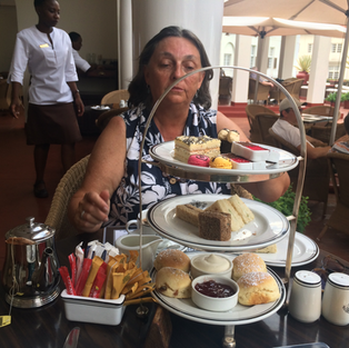 Later, after checking into our hotel and a short rest, we walked from our very modest accommodations to the very elegant Victoria Falls Hotel for high tea on the verandah which looks out over lush lawns towards the falls in the distance.
